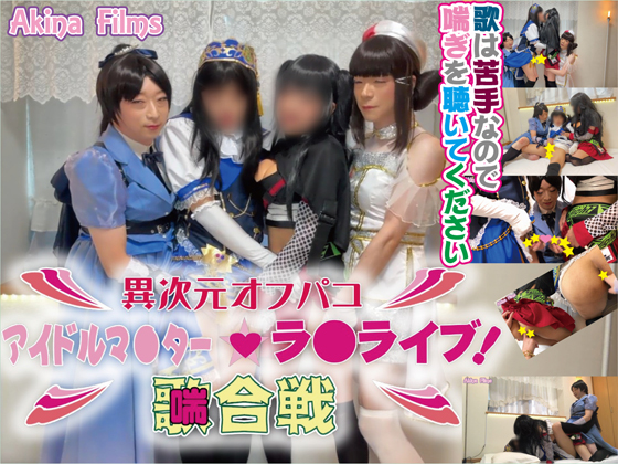 AkinaFilms 女装コスプレ動画 異次元オフパコ アイドル〇スター&ラ〇ライブ喘ぎ合戦 AkinaFilmsはラ〇ライブの衣装とキャラをメインで行っておりますが、時々他のキャラクターアイドルのコスプレをします。 そんな中、製作メンバーNibuちゃんとyuuちゃんは、ア〇マスの衣装も沢山持っているので、かつて公式がア〇マスとラ〇ライブのコラボで歌合戦を開催した。 そこで、ここらで一旦変化球?という意味も込めて、作品の垣根を超えた衣装合わせを行いました。 内容は、各シリーズから2名ずつ登場するのですが、みんな黒髪のキャラクターで合わせてみました。 4人で代わる代わる責めや受けをし、お〇ん〇んをしゃぶったり、しゃぶられたり、シコられたり。ア〇マスの2人のお〇ん〇んは、とにかく敏感で軽くしごいてあげただけで大絶叫! アナルも弄られ、もがき喘ぎ生挿入で3P、4Pへと展開します。 本編 23分 キャスト 〇冬優子役/Nibu 鷲〇文香役/yuu Twitter @yuulive140 黒〇ダイヤ役/るー Twitter @Ruu_sheed 葉〇恋役/lilycd-akina Twitter @lilycd_akina 撮影、編集/lilycd-akina 撮影日/2025年3月 サークル/Akina Films ※音声は、プライバシー保護の都合上少し階調を変換してあります。 ・・・・・・・・・・・・・・・・・・・・・・・・・・・・・・・ 当AkinaFilmsでは、アダルトな内容を含む画像及び動画を扱ってるため18歳未満の閲覧を禁止しているコンテンツがございます。 当AkinaFilmsの動画は、AkinaFilmsのアカウント限定にて公開しております。それ以外のアカウントで公開されている物は違法にアップロードされた物になります。 当AkinaFilms内における画像、動画及び文章等の著作権はAkinaFilmsとlilycd-akinaが所有する物であり一切の無断転載等を禁止します。 また、購入されたコンテンツに関しても同様、無許可でのオンライン映像配信やPVPソフトで共有する事は操作側も視聴者側も違法行為となります。 ・映像送信型性風俗特殊営業届出済 神奈川県公安委員会第451330007223号 Copylight(C) AkinaFilms all rights.reserved