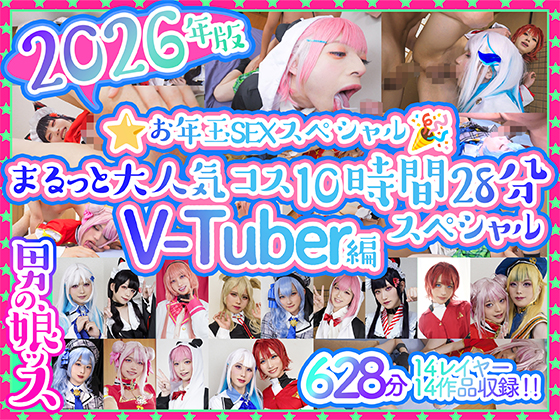 コスプレ元ネタ:Vtuber にじさんじ ホロライブ キャラクター : 女優名 : 動画名 2026年版男の娘ッス★お年玉SEXスペシャル!まるっと大人気コス10時間28分スペシャル🎁V-Tuber編14レイヤー14作品収録!!脅威の628分