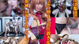 【SNSやってます】 https://twitter.com/tubanomiozisan お世話になります。 二代目つば飲みおじさんです 前編&後編を合体させて 高画質リマスタリング加工&出力で画像サイズもアップ とってもお得な永久保存版! 豪華2本立動画170分 容量もどかんと28ギガでのお届け。 (HDDスペースとりましてすみません) さてさて、お待たせしました! 今回の豪華二本立ては、弊サークルのみならず、 かつては同人アキバグループ全体における“絶対的専属レイヤー”を誇ったFちゃん。 数ある作品群の中でも、コスのハマり具合が圧倒的に可愛い、 美少女度が限界突破した『盾の勇●の成●上が●』ラ●タ●アコス篇をお届けします。 この作品をドロップした当時、実のところFちゃんとは1、2年は疎遠になっておりました。 この可愛さとイベント時の神対応からすれば、弊サークルから離れていくのも無理はないかな…と、彼女が上京当時、某大物カメコさんの【肉体関係は信頼関係】という名言を伝えたところ、非常に不機嫌になっていたのが懐かしく思えるなぁ…と郷愁に浸っていた矢先、サークルメンバーよりある報告を受けたのが事の始まりでした。 そのメンバーがコスイベントで一般参加客として会場内をウロウロしていた所、やけに可愛いレイヤーさんから逆ナン(!?)され、イベント開催中にも拘らず、裏ではとんでもないことをされたという…。 【前篇】は、そんなメンバーが決死の覚悟で撮影した素材映像が元になっています。その“やけに可愛いレイヤーさん”こそ、疎遠になっていたFちゃんだったのです。彼女は関係者用トイレへ逆ナンしたメンバーが、まさか弊サークルの者だとはまさか思っていなかったのでしょう、冒頭からいきなり舌をベロベロ舐め合い、唾液を啜り合う激しいDキスを始めてしまいます。躊躇するメンバーを気にすることなく、ネットリ濃厚に…。そしてその流れの乳首舐めでは、甘噛みを挟みつつ、これまた超濃厚です。これは気弱性格のメンバーも、流石に気持ち良さが隠しきれず喘いでいます。 そして個室に入ると、勢いよく噴射するオシッコ。その直後にお掃除クンニさせ…と、ここまで動画を見ている私はあることに気付きました。それは数々のプレイが、かつて私が彼女へ叩き込んだコスプレイヤーのイロハだったのです。すでに疎遠になり、イベント会場で顔を合わせても殆ど無視されていた関係ではありましたが、実際は身体ではキチンと覚えていてくれたのだなぁ…と感慨深く勃起してしまいました。 その行動は、場所を移してのオモチャ責めでも健在でして「喉奥イキ潮噴射やって」と、やはりかつて、私が教えたプレイをメンバーに要求しているのです…。 実はこのメンバーは最近サークルに入った新人なので、当然そんなプレイは知りません。言われるがまま、Fちゃんの口腔へ根元までチ●ポを突っ込み喉奥イラマ。“グボォ!!”“ゲボォ!!”などと壮絶に喘ぎつつ、やがてパイパンオマ●コからおびただしい量のアクメ潮が噴射。「ブシャー」という音に驚いたメンバーがイラマを止めようとしますが、Fちゃんはこれを未然に防ぐように、彼の身体をガチッとホールド。最後まで満足いく体液噴射を満喫しつつ、イッていました。 セックスでは、当然のように生中です。膣奥射精をじっくり楽しんだ後、まだまだ萎えないメンバーのチ●ポをシゴきまくり、たっぷり射精。その様子を舌なめずりしながら見ているFちゃんは、まさにメスガキ小悪魔。 ここまで観た私は、すでに嫉妬興奮に狂い、四回ほどシコっていましたが、それでも収まらず絶倫メンバーたちに連絡を入れ、Fちゃんとのミーティングをセッティングしたのでした…。 【後篇】の冒頭から、メスガキFちゃんが調子に乗っている一方で、周囲のメンバー、特に最高齢の初老メンバーの苛立ちが映像からもわかります。というのも前作の、気弱なメンバーをジリジリと追い込む映像を何度も見返し、当の気弱メンバー本人へ、なんと「レイヤーにやられ放題されてんじゃないよ、俺たちにもプライドがあるはずだろ!」と説教していたようで…(その時なぜか勃起していたそうです)。それとは別に、今回は彼女の子宮破壊寸前まで追い込み、生意気な態度を改めさせるのを目的とした制裁用デカマラチ●ポメンバーも特別に召喚しました。 案の定最初のDキスで、初老メンバーの下水臭を放つ舌ゴケを吸引し、脳がクラクラしたFちゃん。続けざまにオモチャ責めでマ●コに何個もローターを挿入されつつ、尻穴をベロベロと舐められます。続くイラマ行列でも終始喉奥責めが続きますが…責めもやり続けると快楽に変わる、とよく言いますが、デカマラメンバーの巨大マラを、まるで恵方巻を食べるように恍惚しながら咥えている光景がまさにそれ。 遂に始まった乱交でしたが、彼女が最も感じイキ潮まで噴射して絶叫していたのが、デカマラメンバー…ではなく、なんと最高齢の初老メンバーチ●ポ。ここでさすがに、全員が